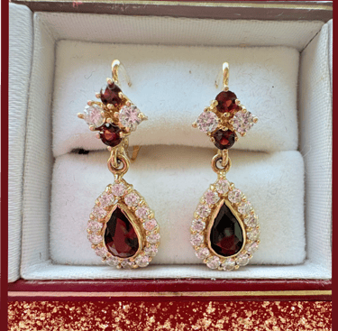 Dos Granates engarzados en Oro de 18 K y fabricados en Italia.